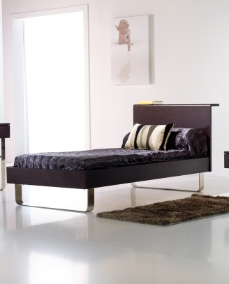 Cama realizada en madera wengué y con patas en acero cromado. Este modelo es ideal para ambientes juveniles. Para colchón de 90x190.