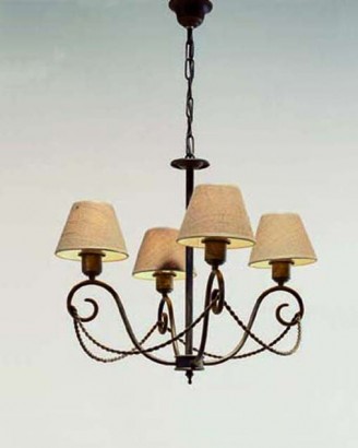 Lámpara realizada en forja, pintada al horno y decorada con pátinas a mano. Este modelo es ideal para ambientes rústicos.