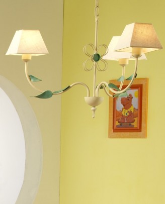 Lámpara realizada en forja, pintada al horno y decorada con patina de blanco crema y verde a mano. Este modelo es ideal para el dormitorio de los más peques.